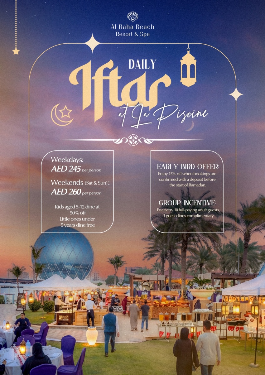 Additional Offer: Early Bird: Get 15% off when your booking is confirmed with a deposit before the start of Ramadan Group Offer: For every 10 full-paying adults, 1 guest dines free.